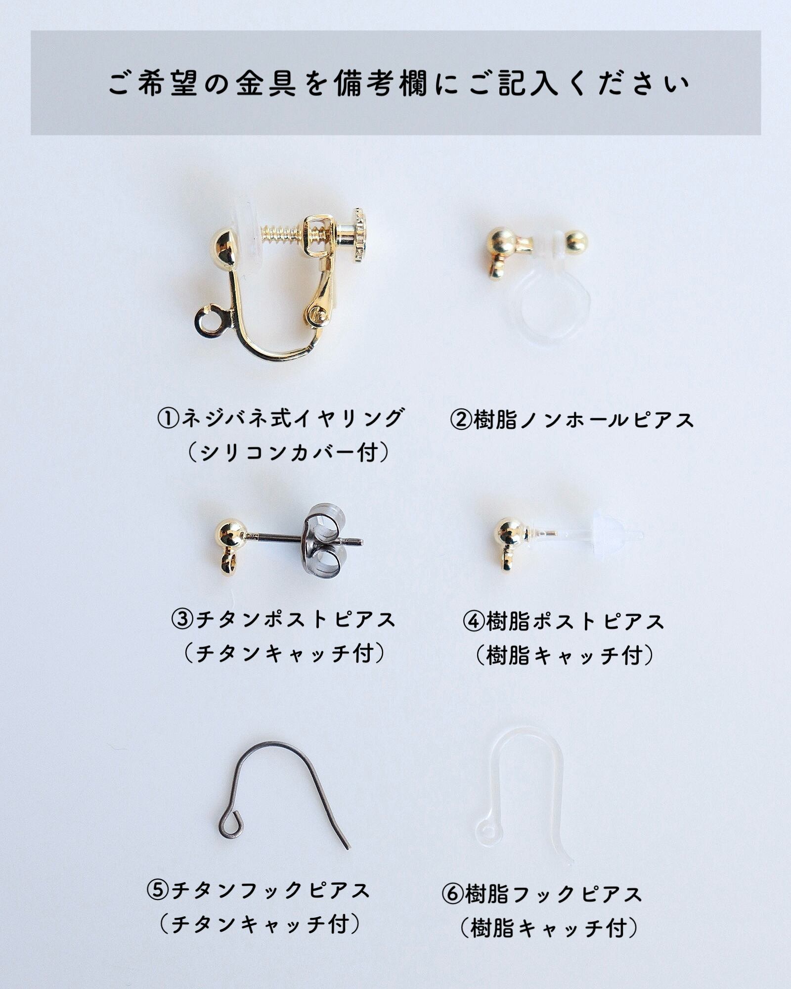 ご希望の金具を備考欄にてお知らせください。