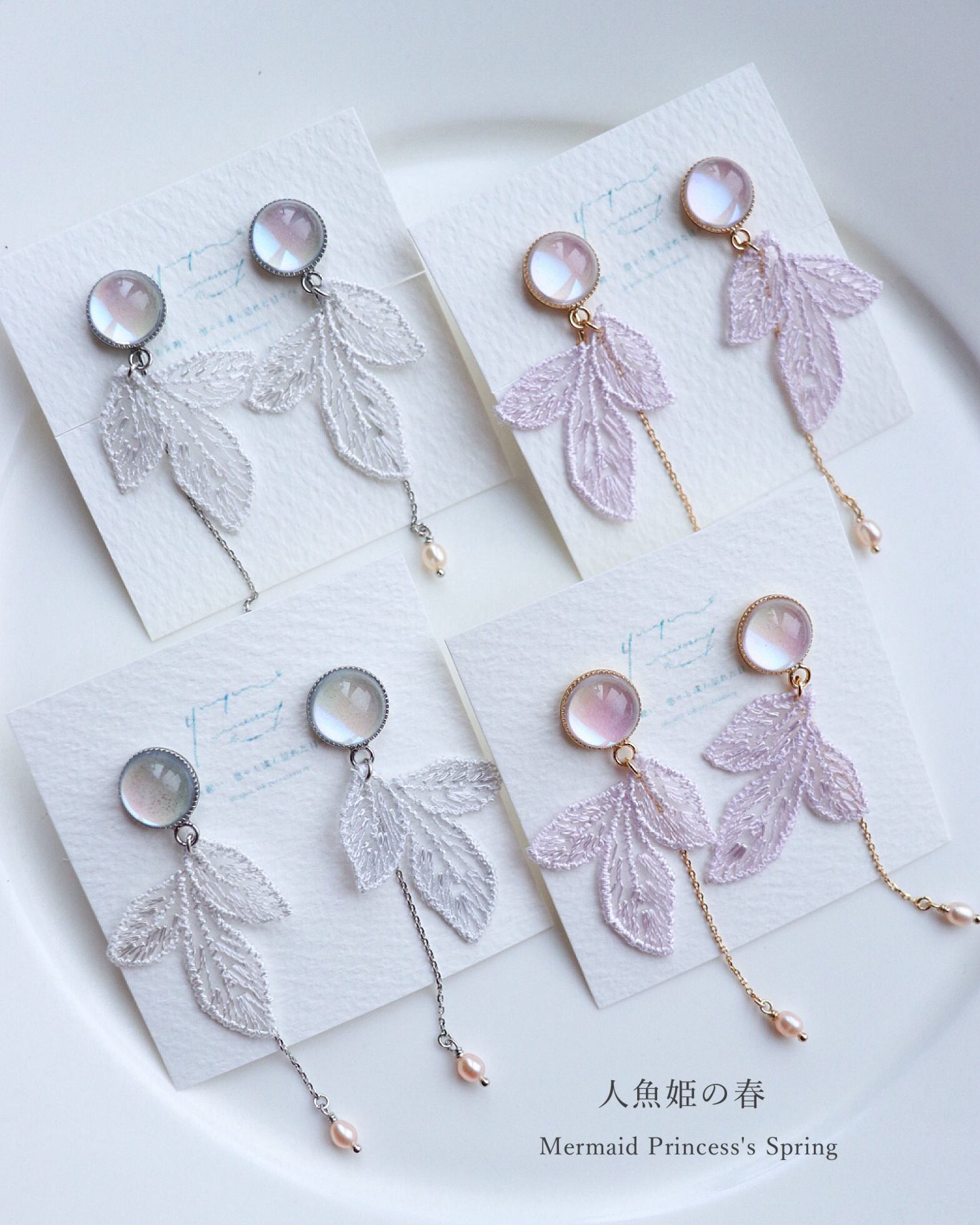 ・ガラス、アルコールインクアート、レース、淡水パール