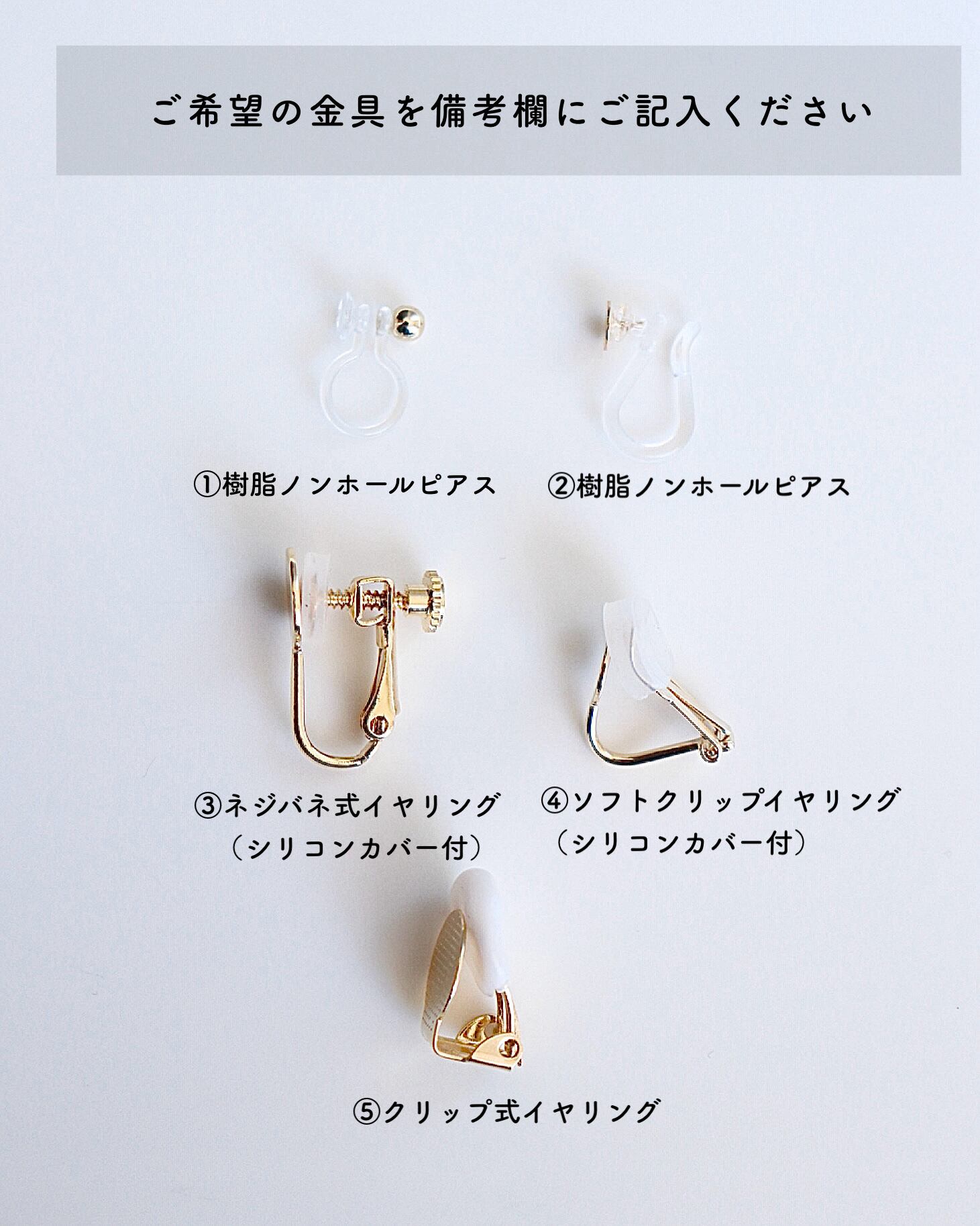 ご希望の金具を備考欄にてお知らせください。